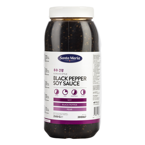 Korean Style Black Pepper Soy Sauce 2.5kg Korean Style Black Pepper Soy Sauce 2.5kg Pack Size: 2.5kg Code: A6804 To order this product or discuss alternatives, call 0330 058 088 or speak to your MKG account manager.